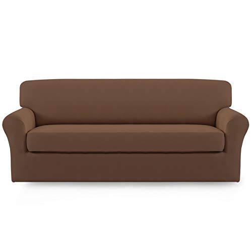 New Deal Easy-Going 2 Pieces Microfiber Stretch Sofa Slipcover – Spandex Soft Fitted Sofa Couch Cover, Washable Furniture Protector with Elastic Bottom Kids,Pet (Oversized Sofa, Brown)